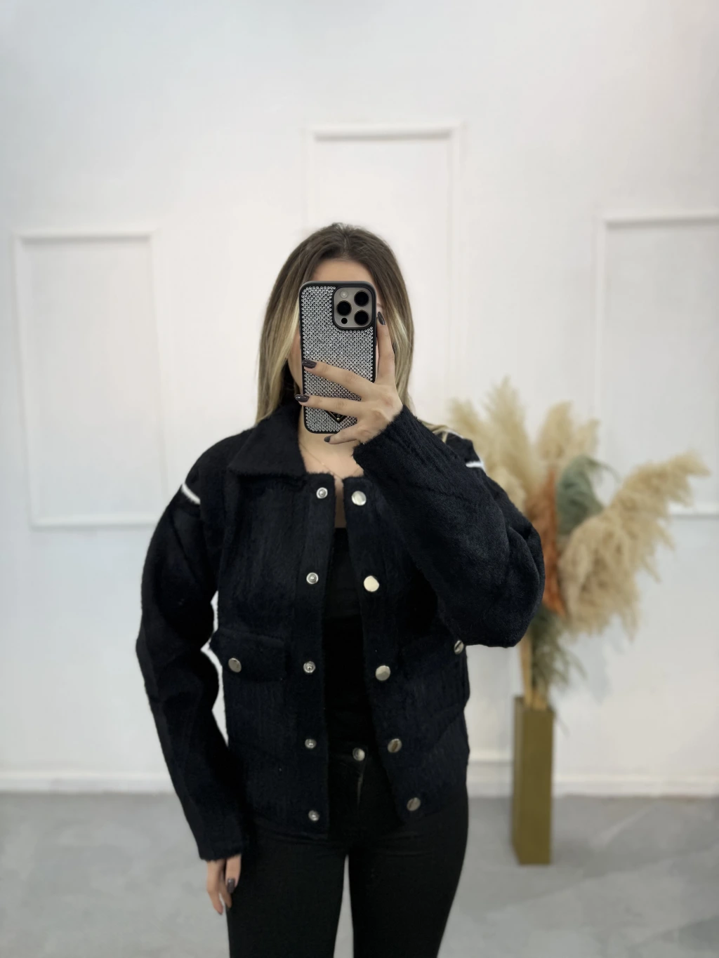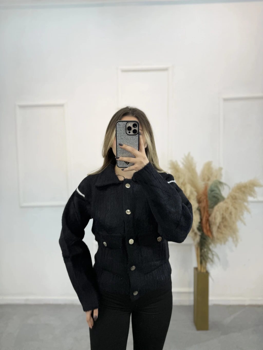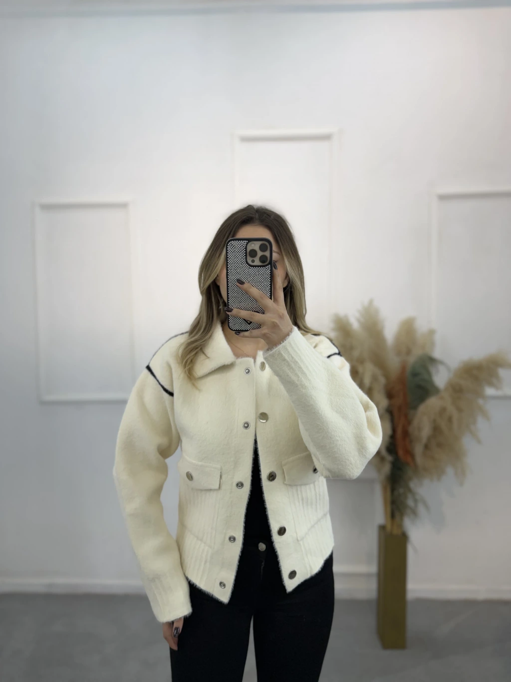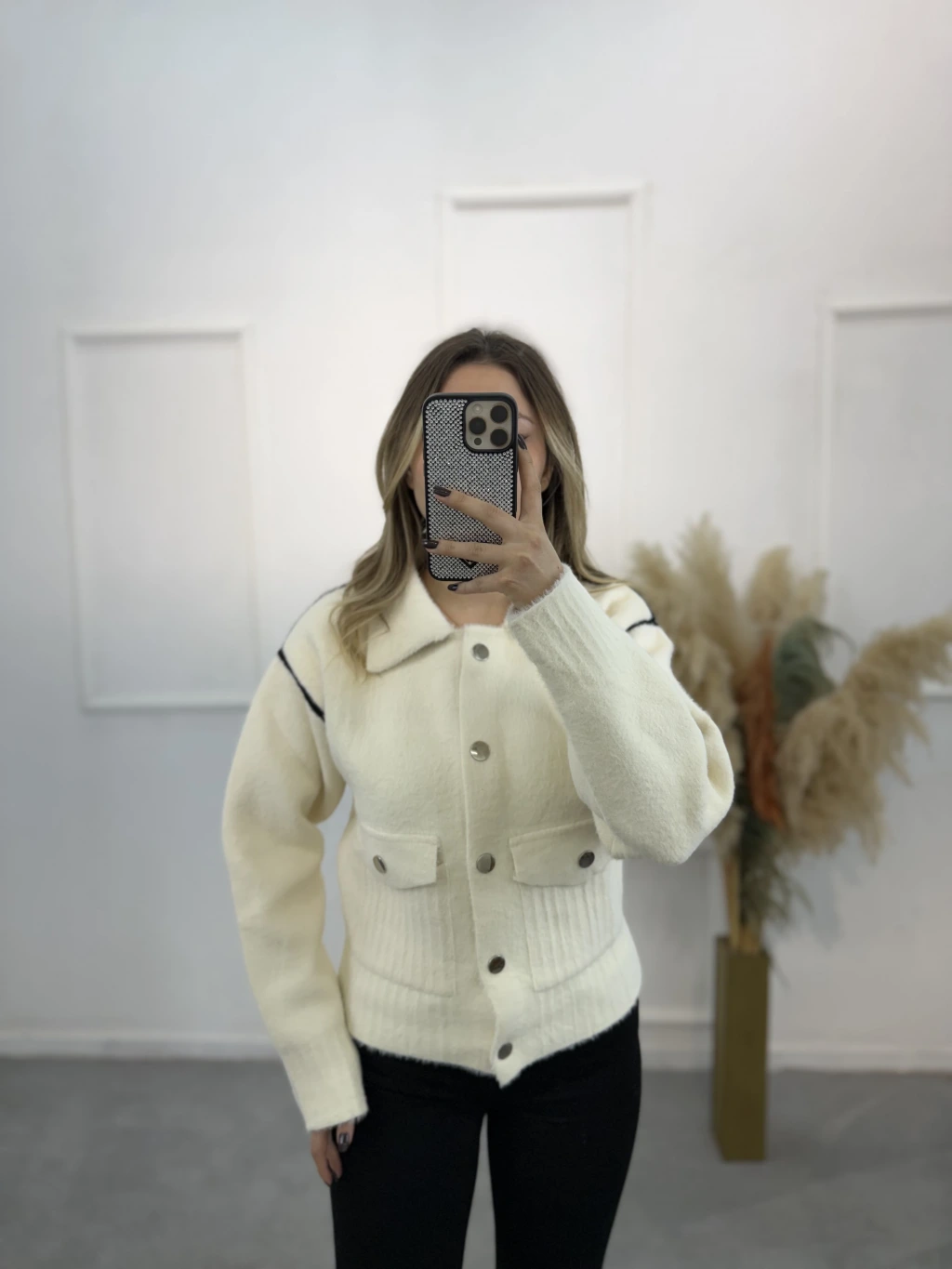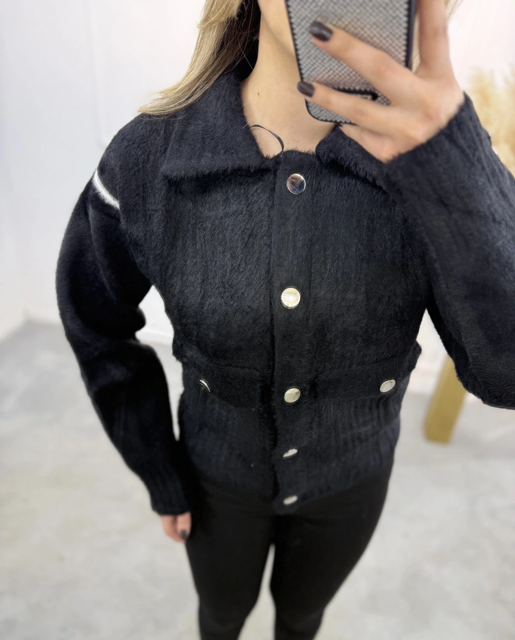 Angora Gömlek Yaka Şeritli Hırka
