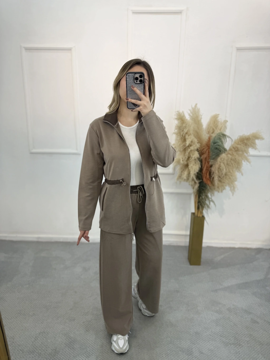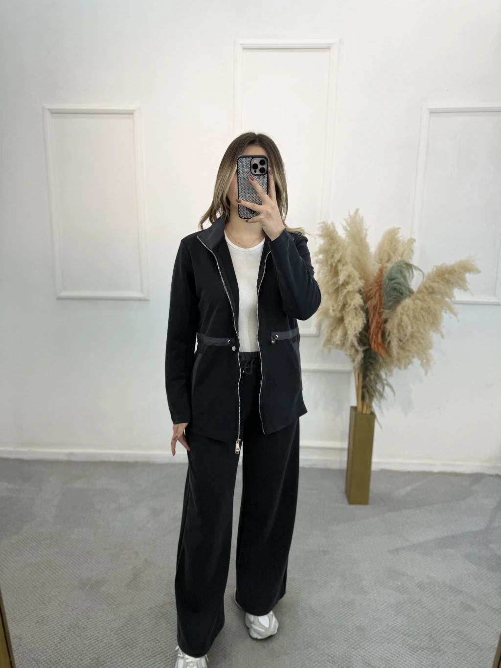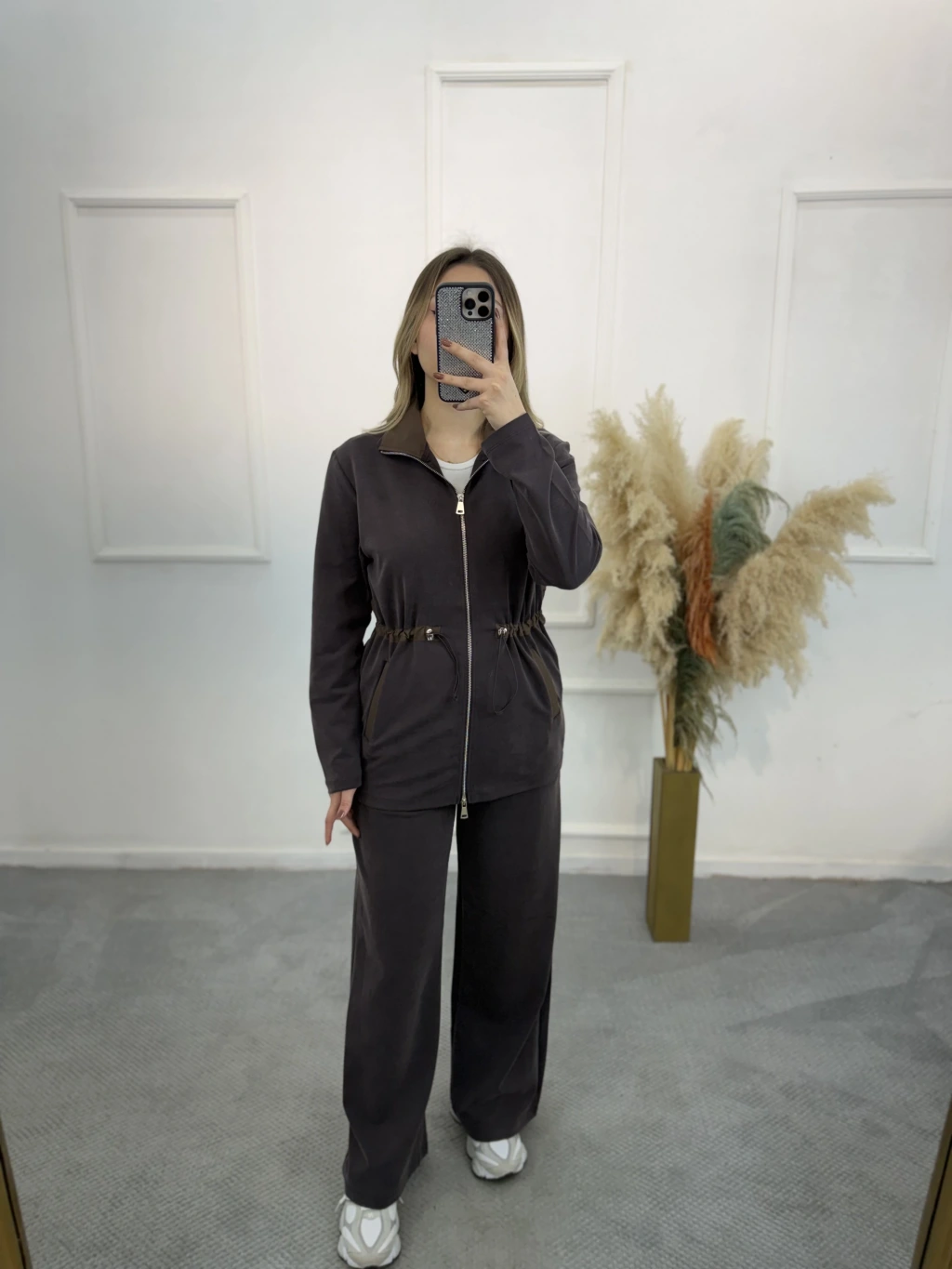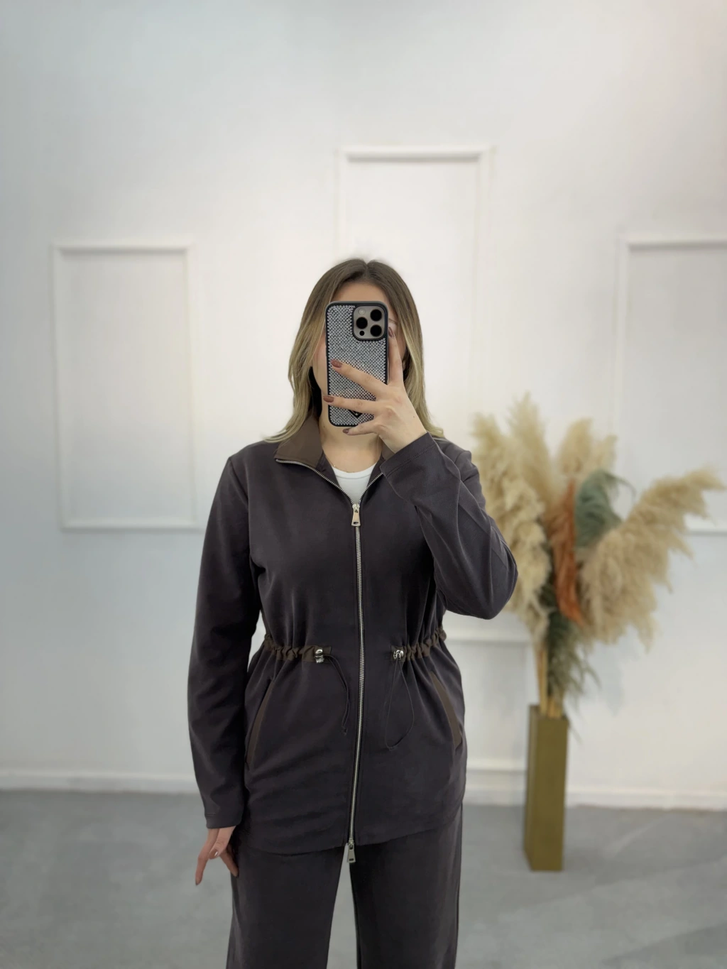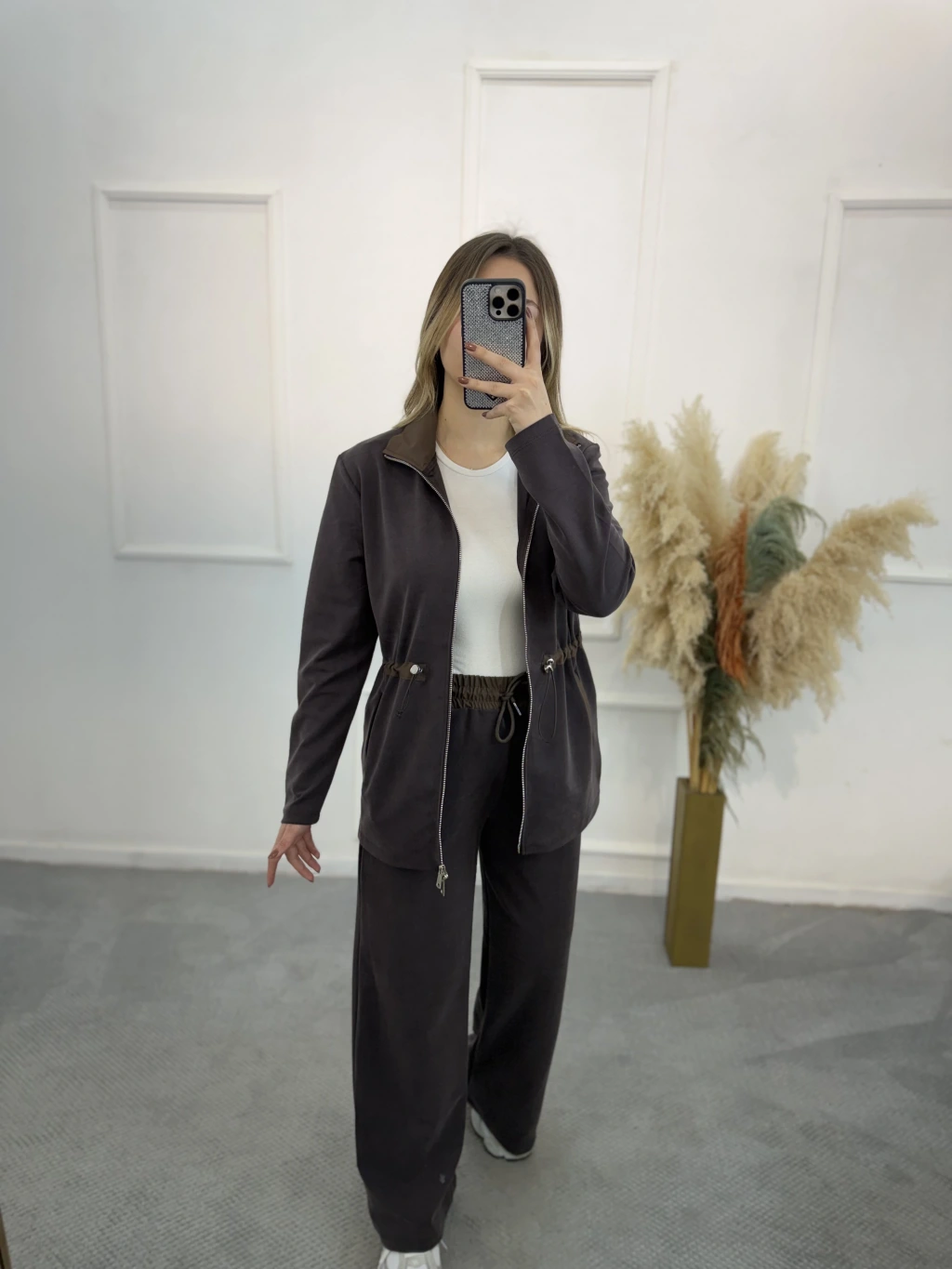 Arka Kapitone Detaylı Çift Fermuarlı İkili Takım