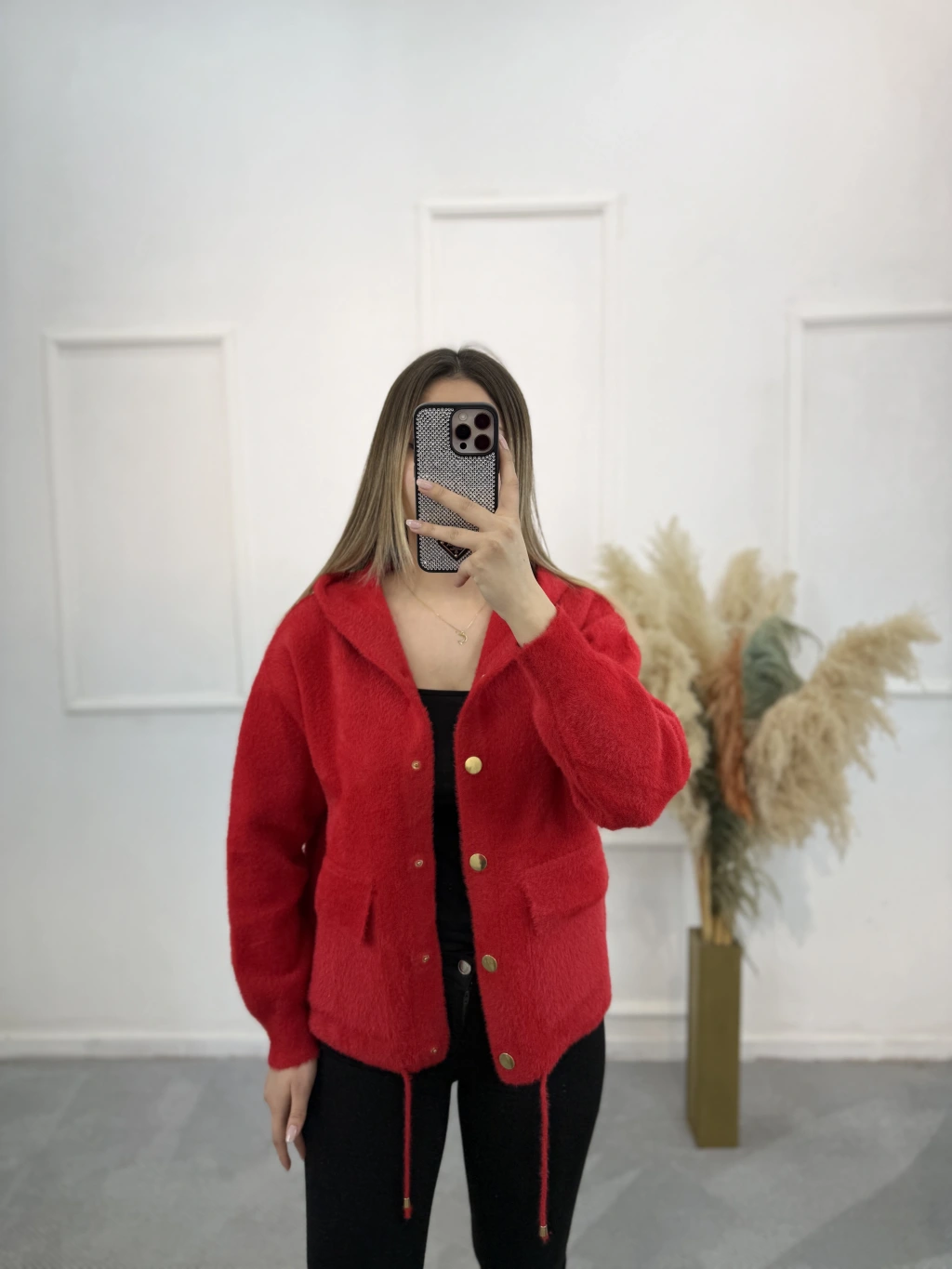 Bely Kapşonlu Triko Hırka