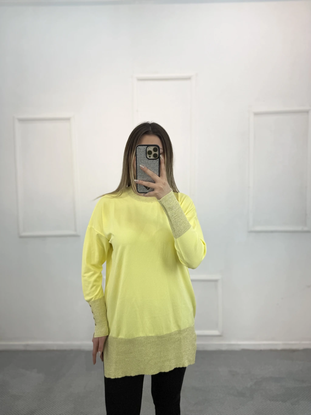 Ceks Yaka Ve Kol Simli Merserize Tunik