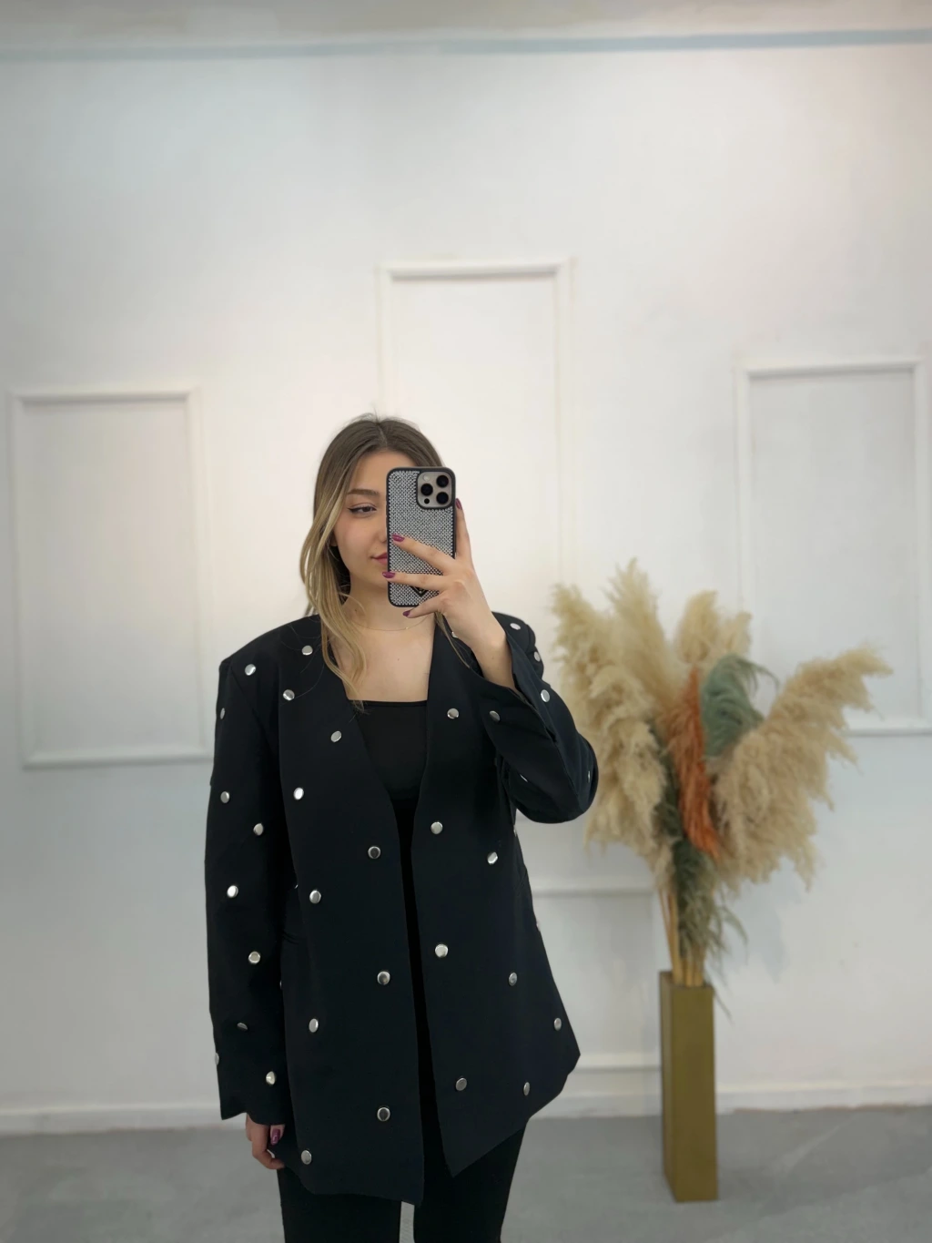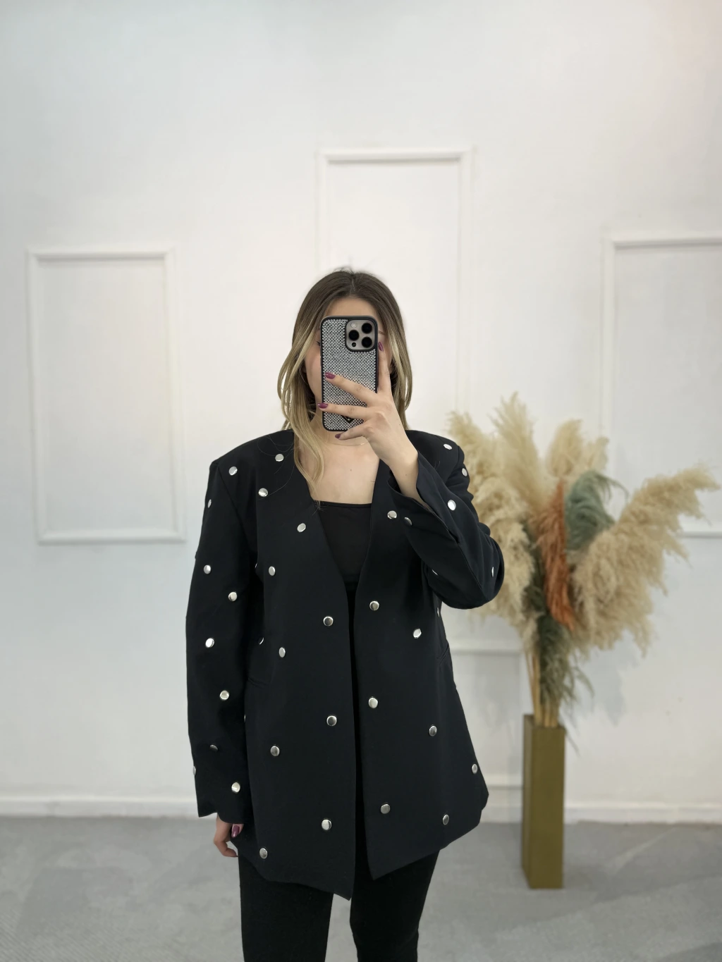 Cizor Zımbalı V Yaka Tasarım Ceket