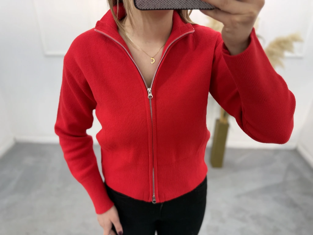 Fine Çift Fermuarlı Triko Hırka