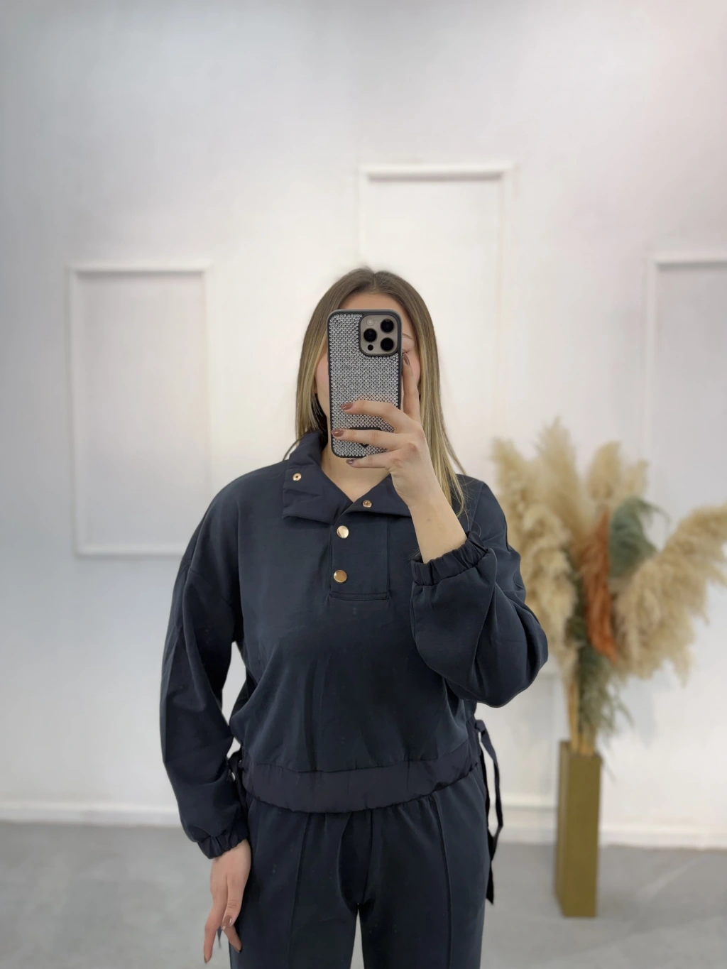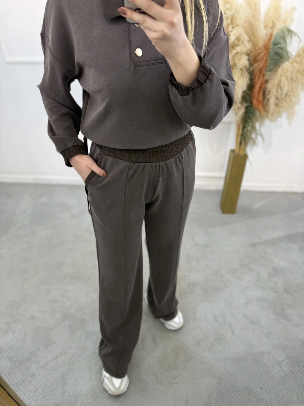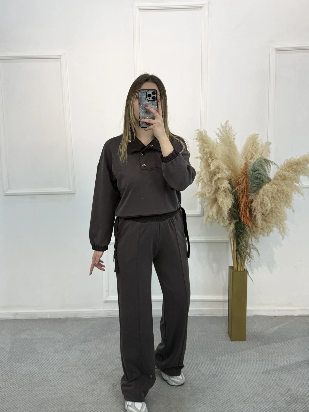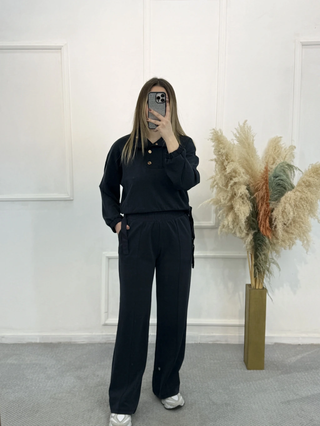 Gisa Dik Yaka Düğme Detaylı Modal İkili Takım