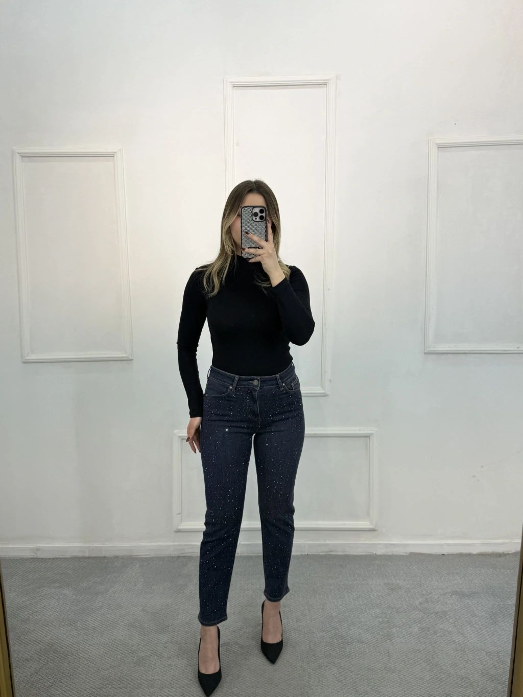 Jast Likralı Dökme Taşlı Mom Jean