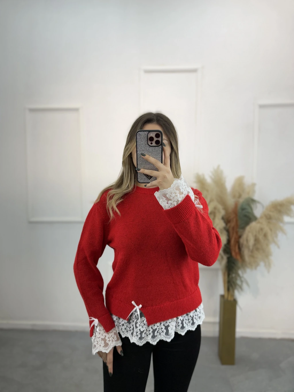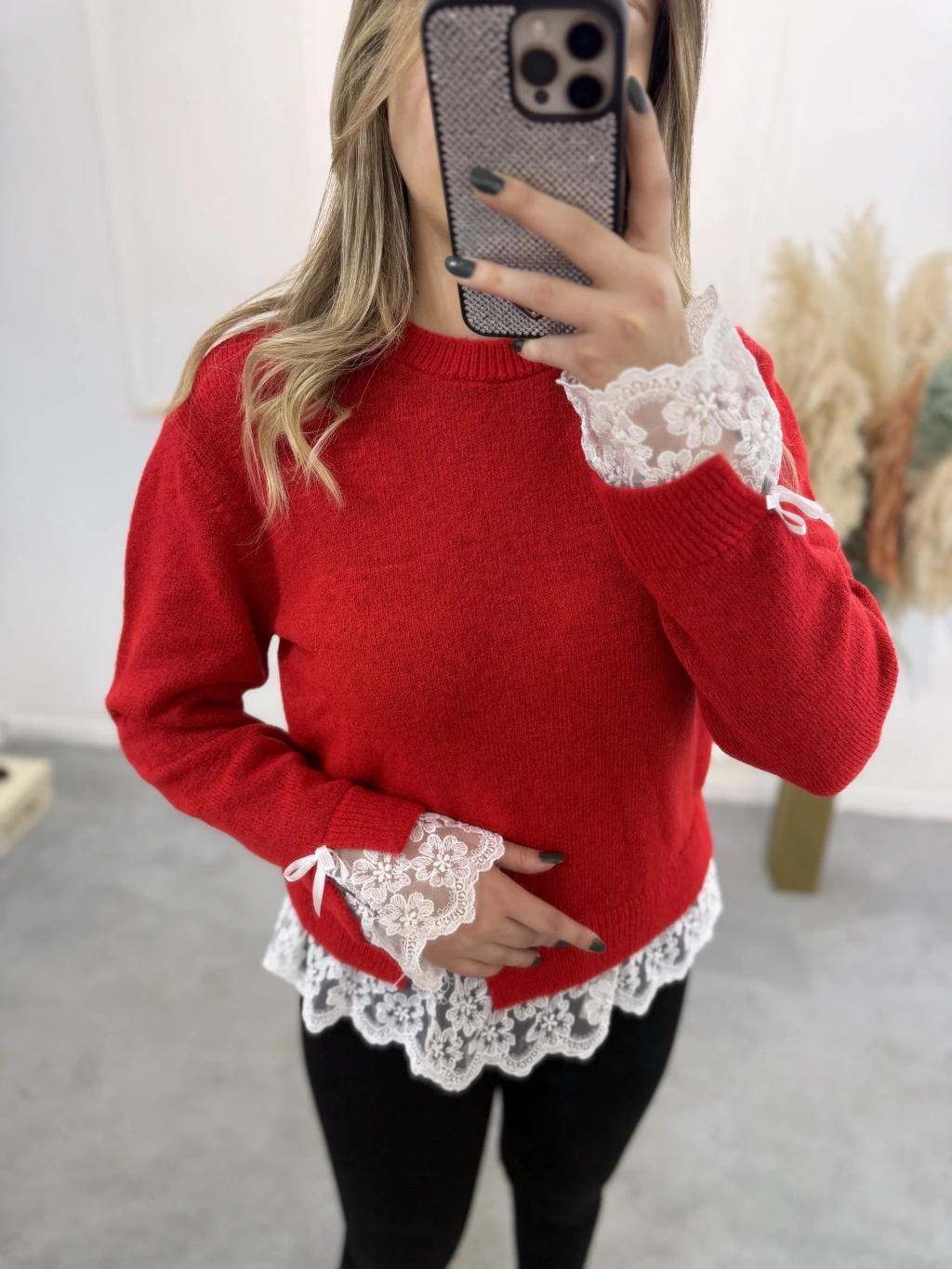 Lilt Kol Ve Etek Ucu Dantelli Kazak