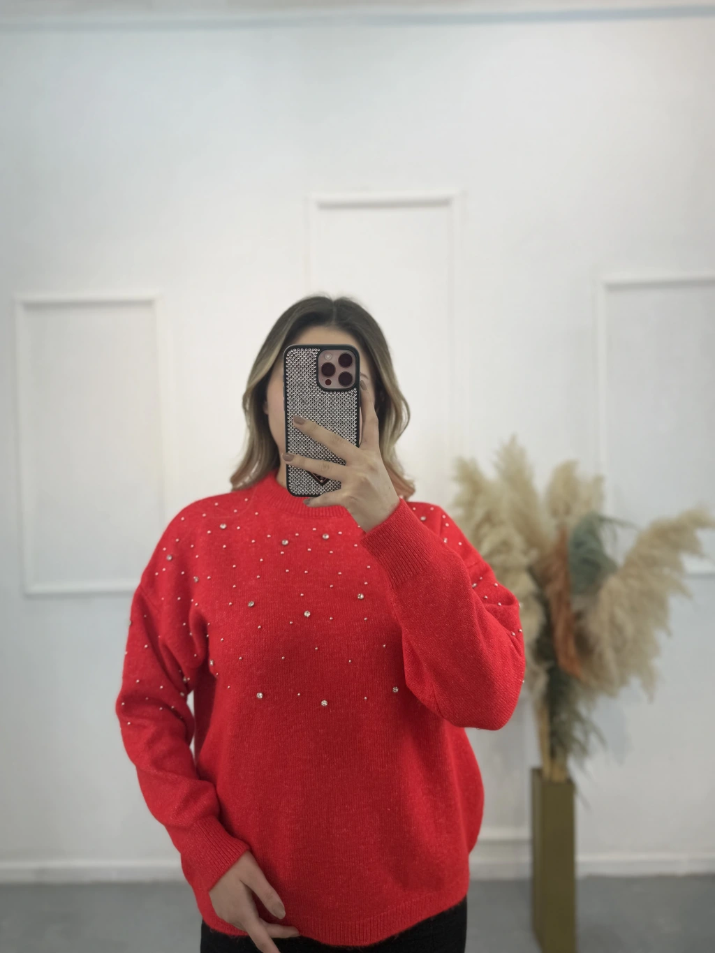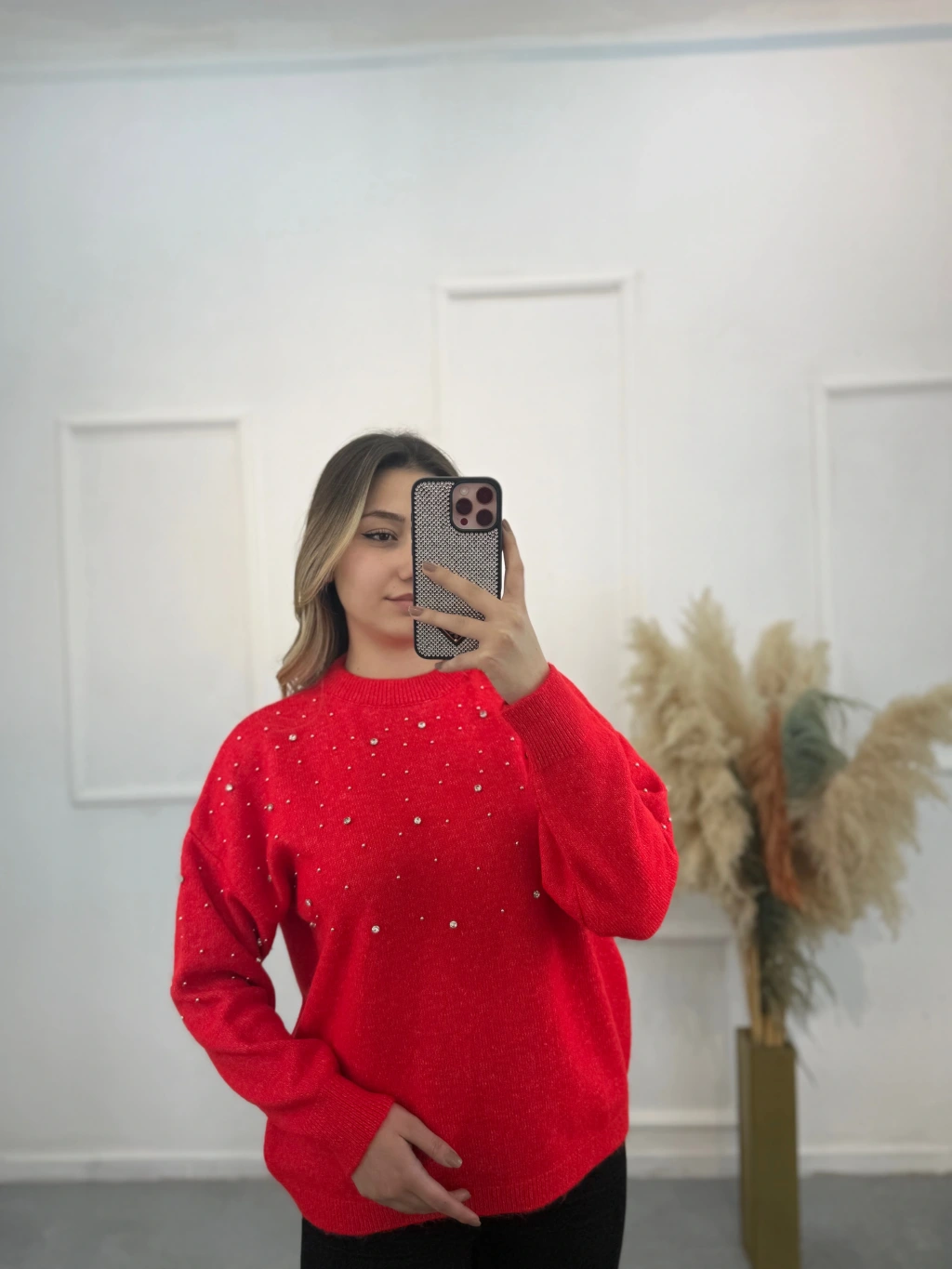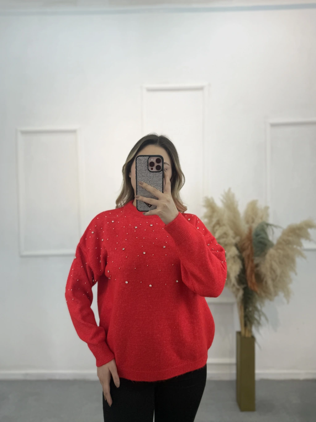Oxter Serpme Taşlı Triko Kazak