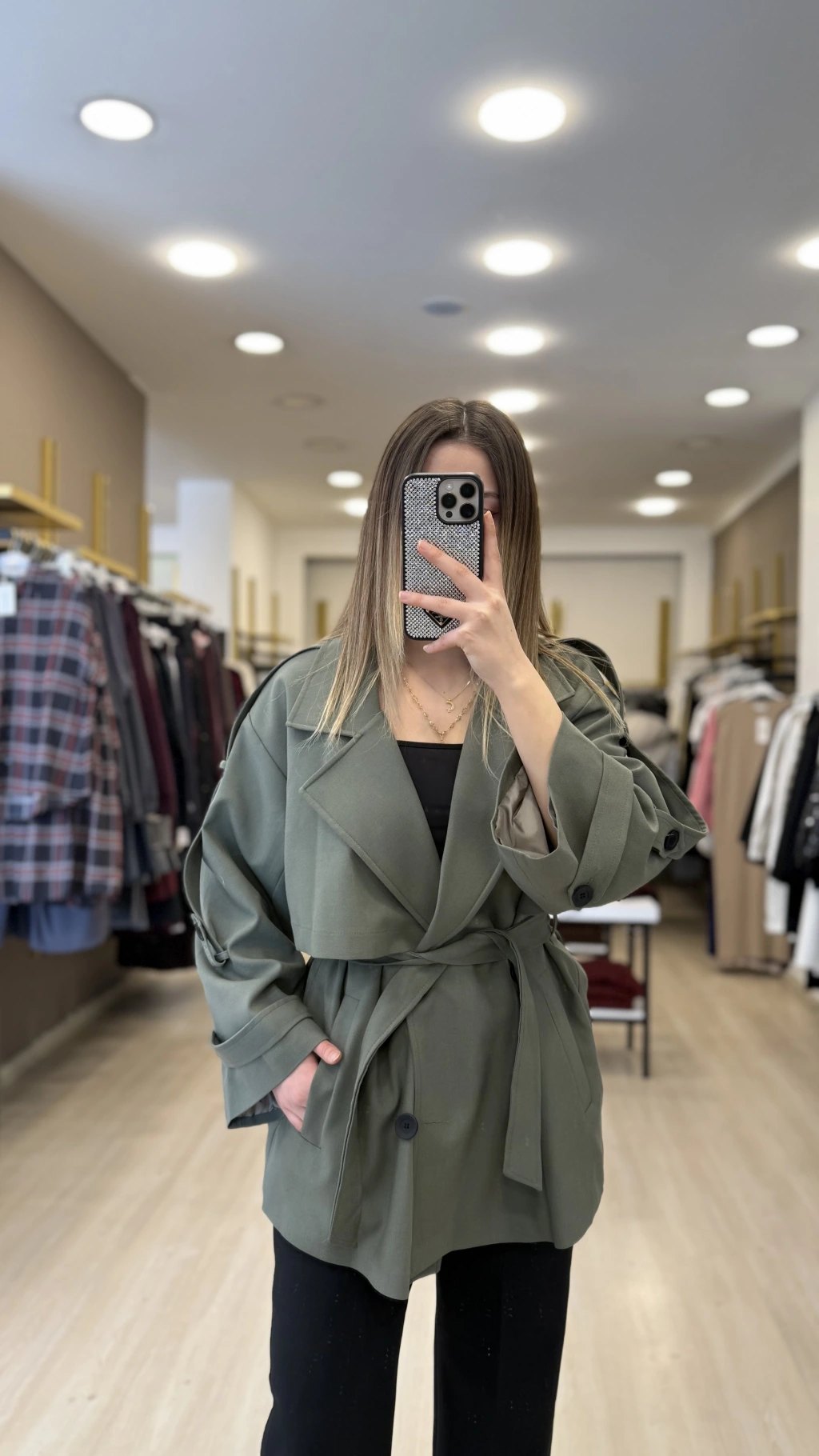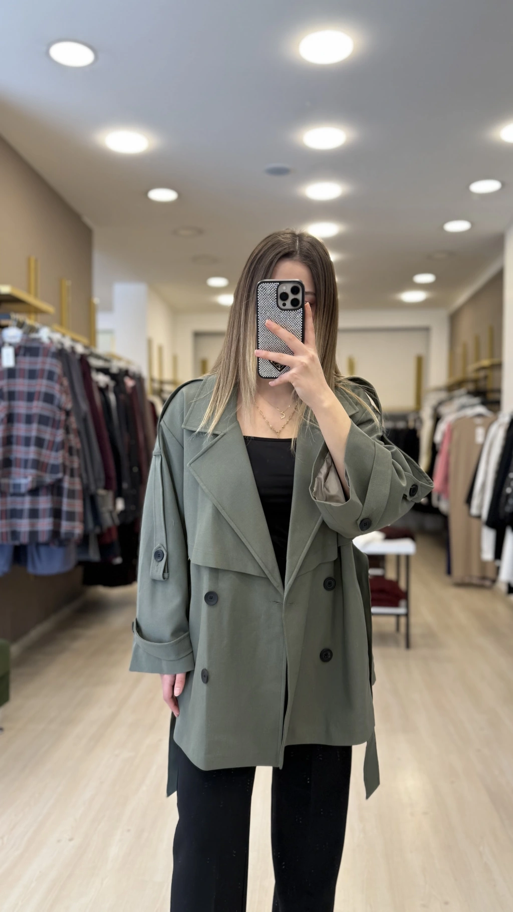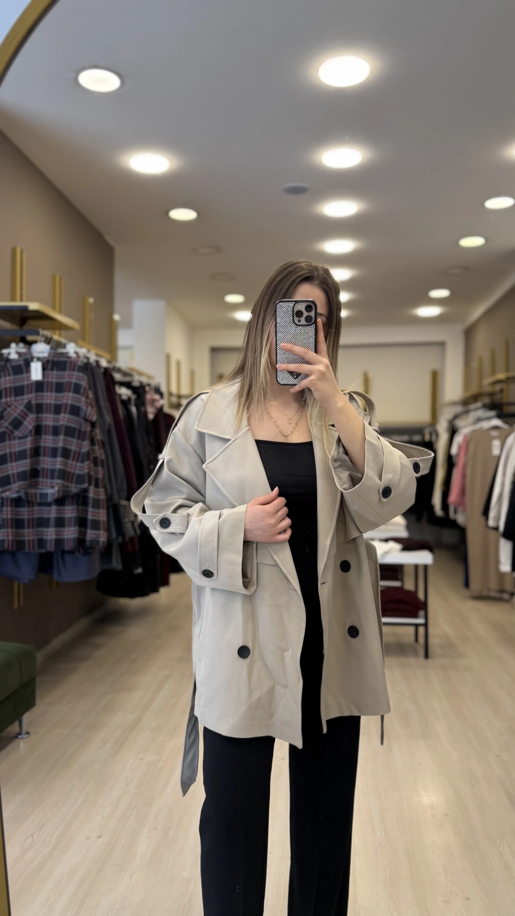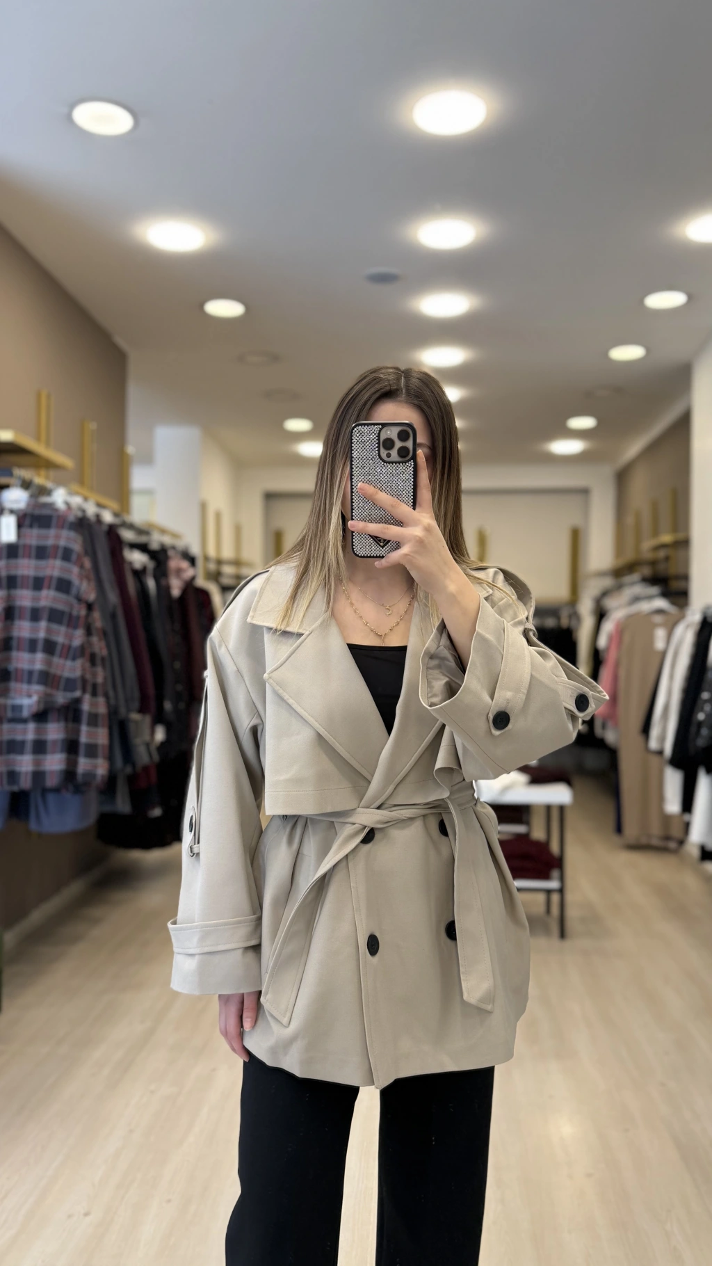 Per Düğme Detaylı Kısa Trençkot