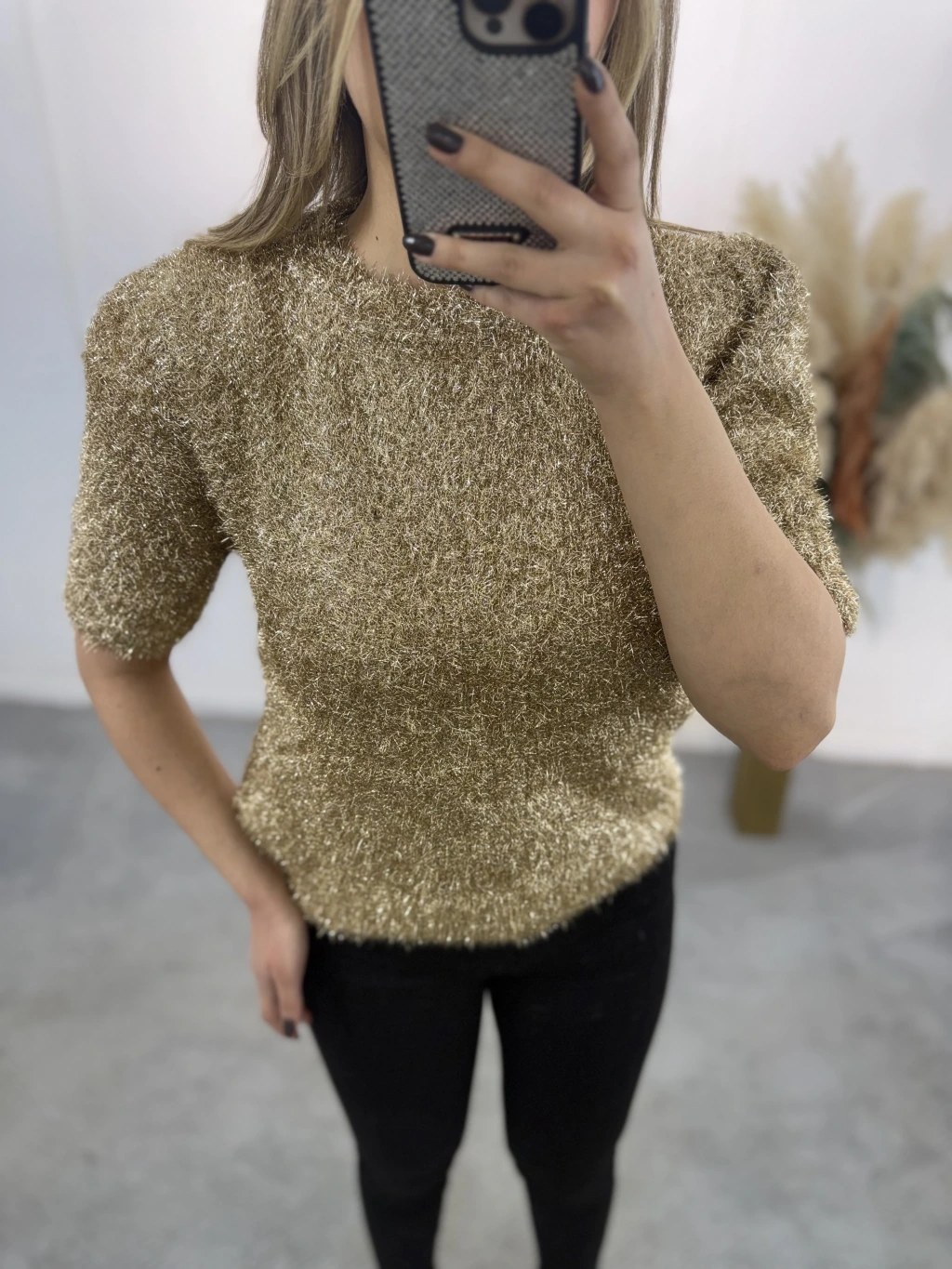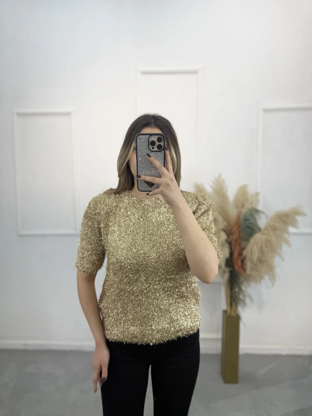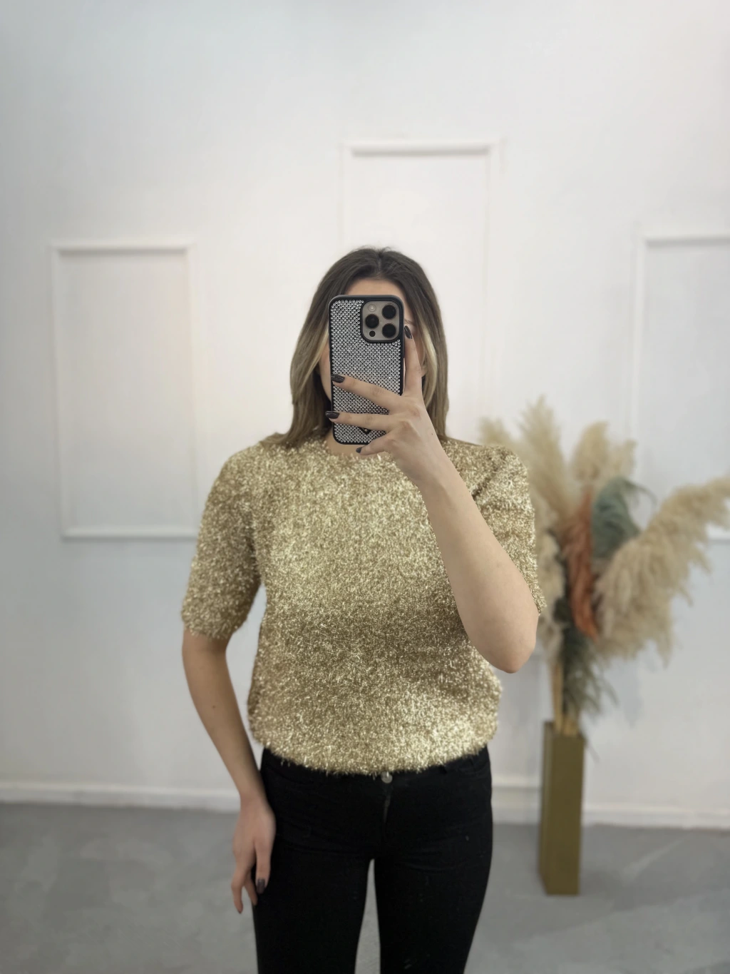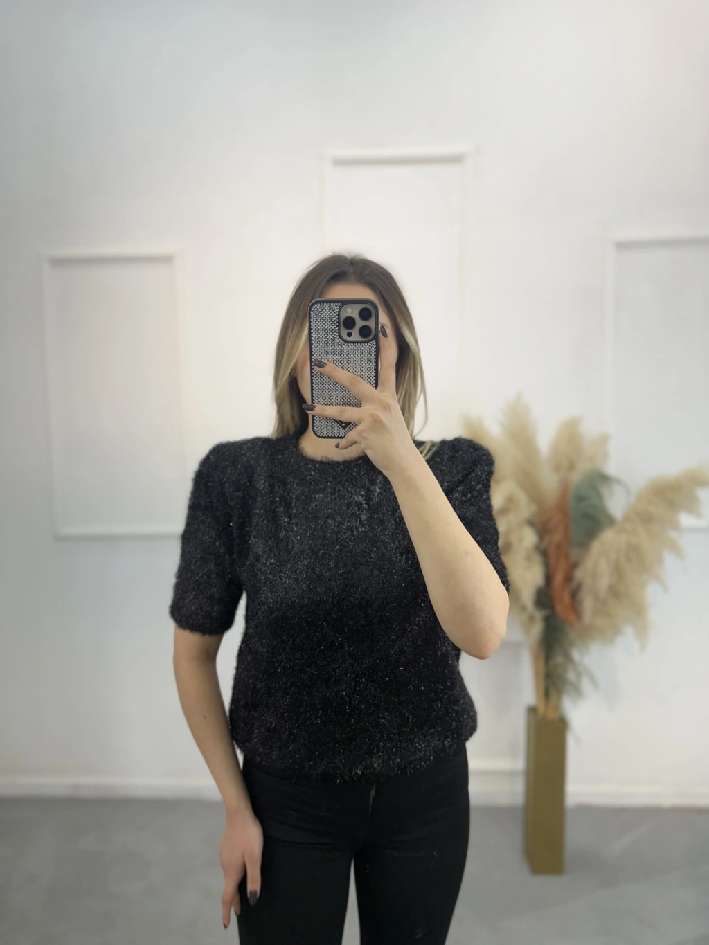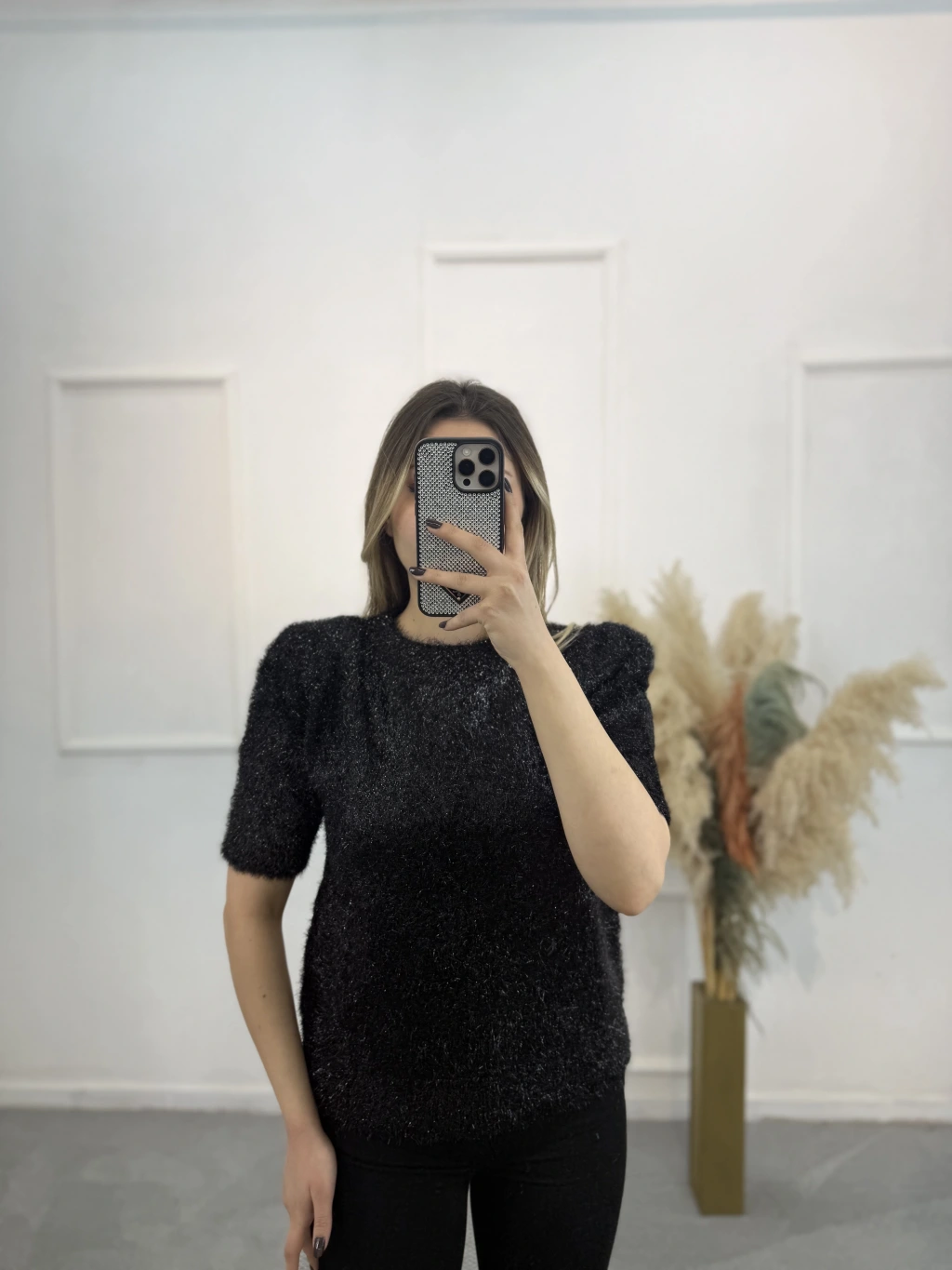 Simli Angora Kısa Kol Kazak