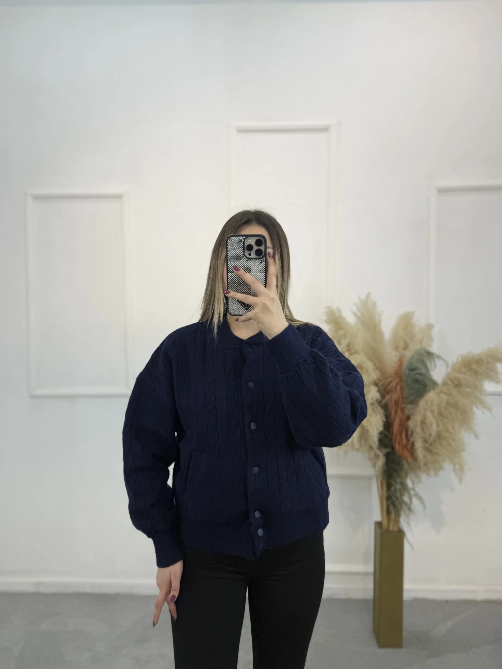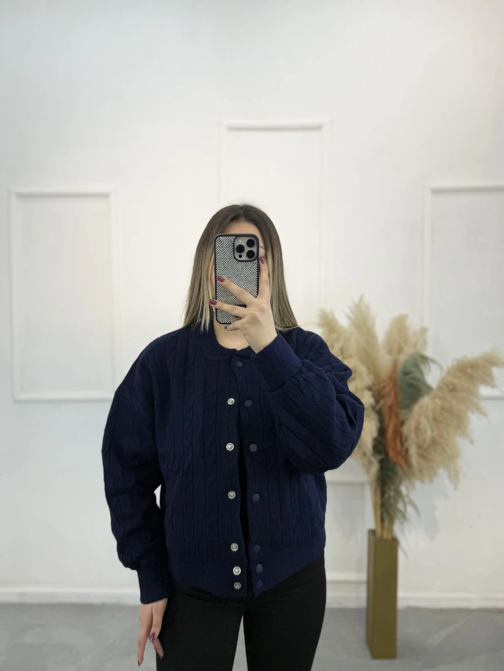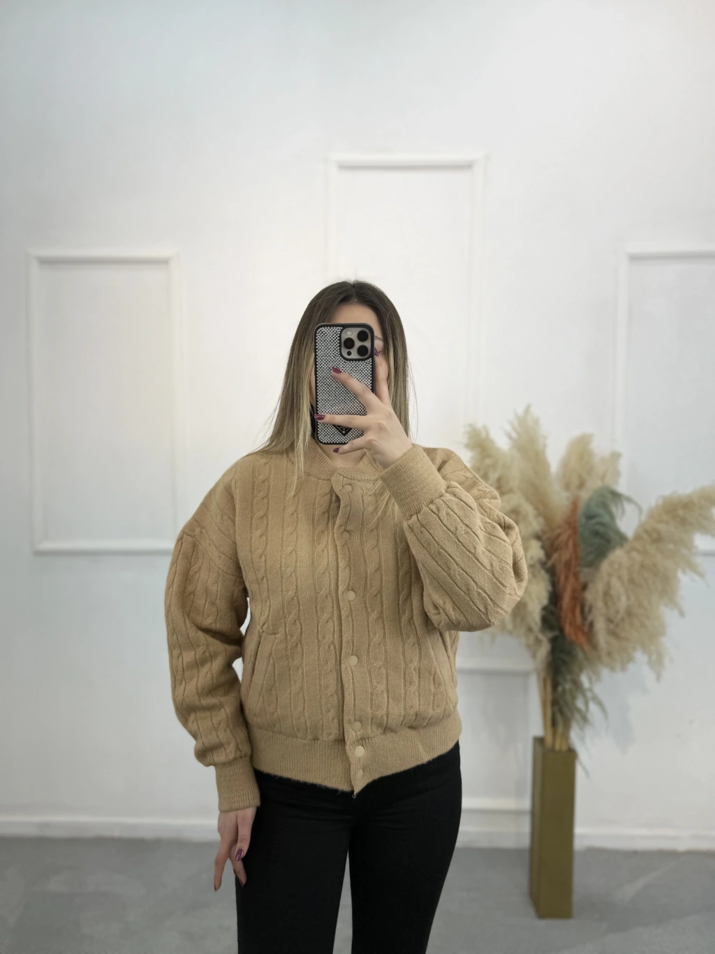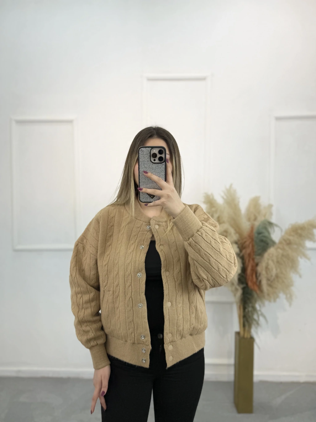 Vine Örgü Detaylı Çıtçıtlı Yün Hırka