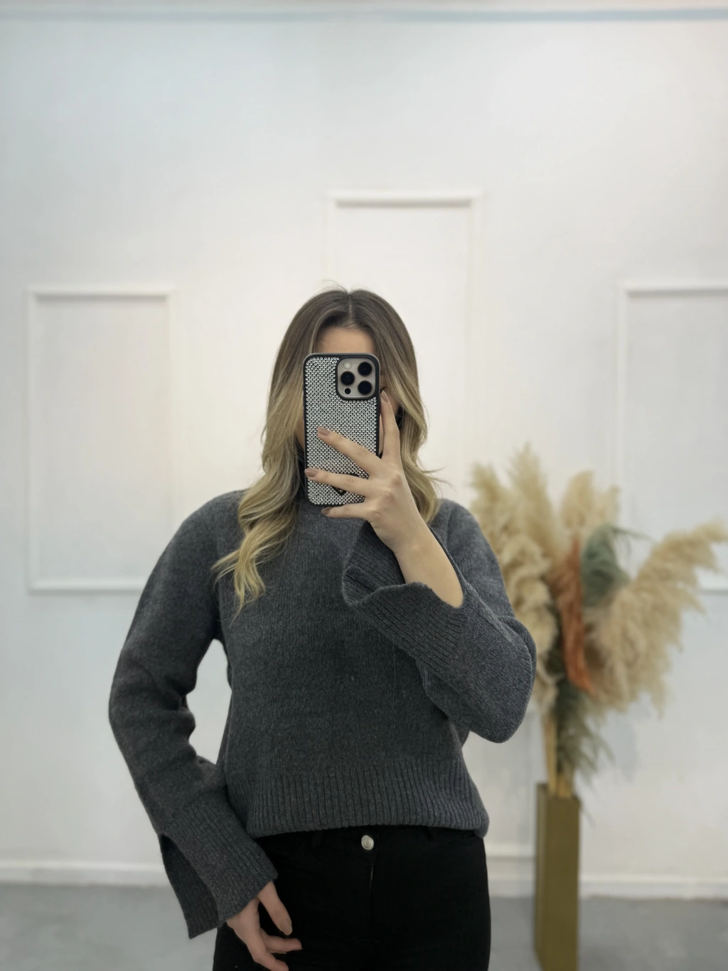 Yahrez Kolları Yırtmaçlı Triko Kazak