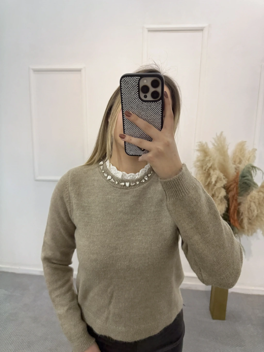 Zugz Yaka Taş Ve Güpürlü Kazak